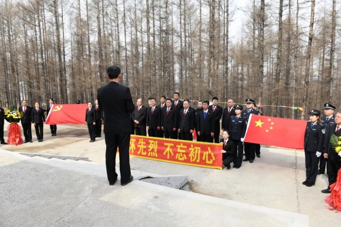 4月4日上午,清明节来临之际,梨树区人民法院党支部组织全体党员团员干警到梨树区抗美援朝烈士陵园开展“缅怀先烈,不忘初心”主题祭扫活动,对全院干警进行爱国主义和革命传统教育。